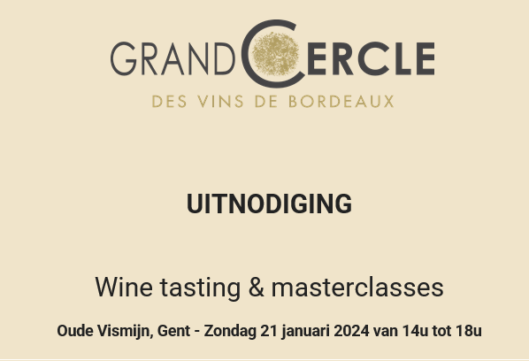 Nous serons présents à la dégustation du Grand Cercle des Vins de Bordeaux le dimanche 21 janvier à Gand, au Oude Vismijn de 14h à 18h.