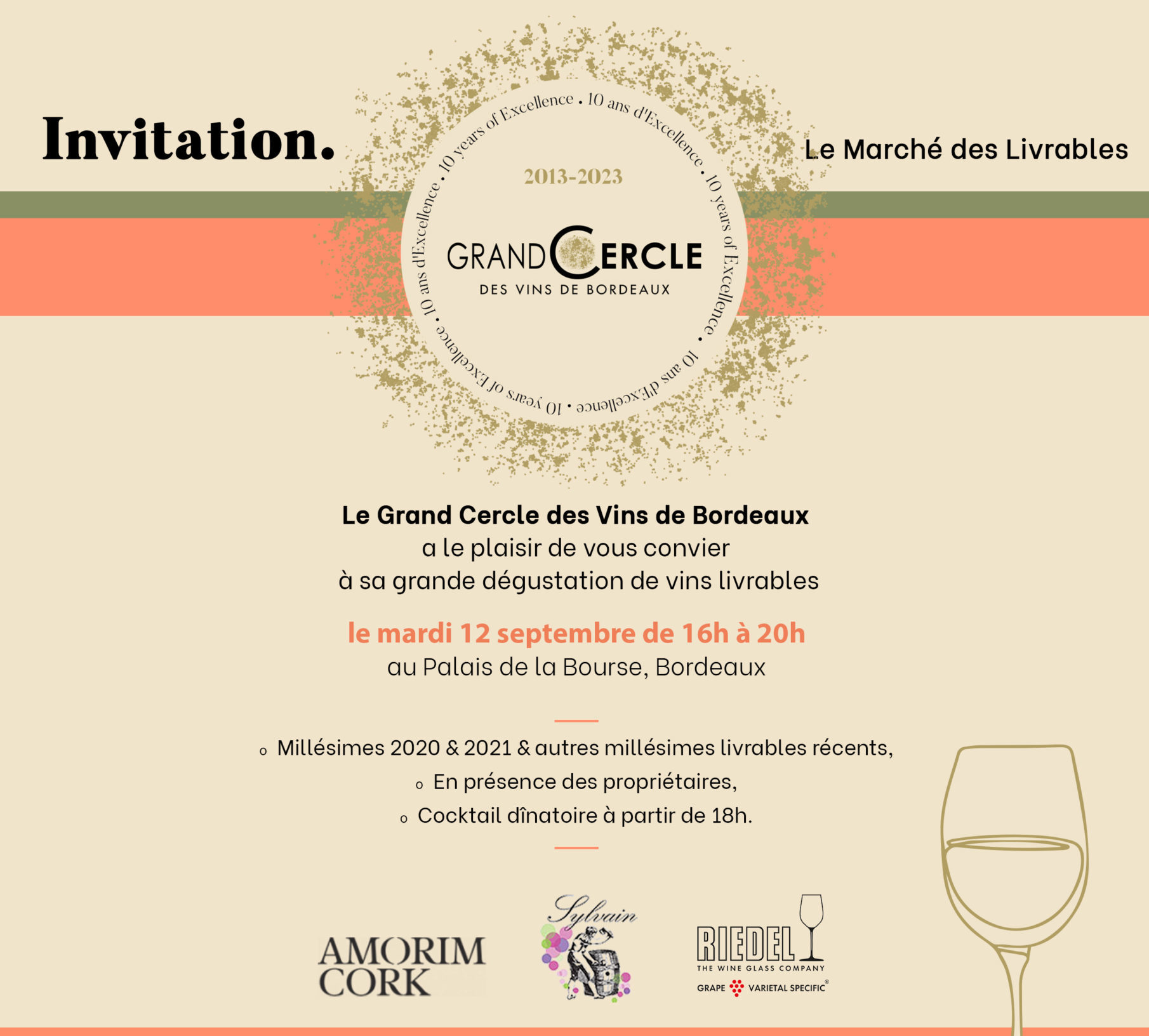 Dégustation des millésimes 2016, 2019 et 2021 dans le cadre de la dégustation » Le Marché des Livrables » organisé par le Grand Cercle au Palais de la Bourse à Bordeaux le mardi 12 septembre 2023.